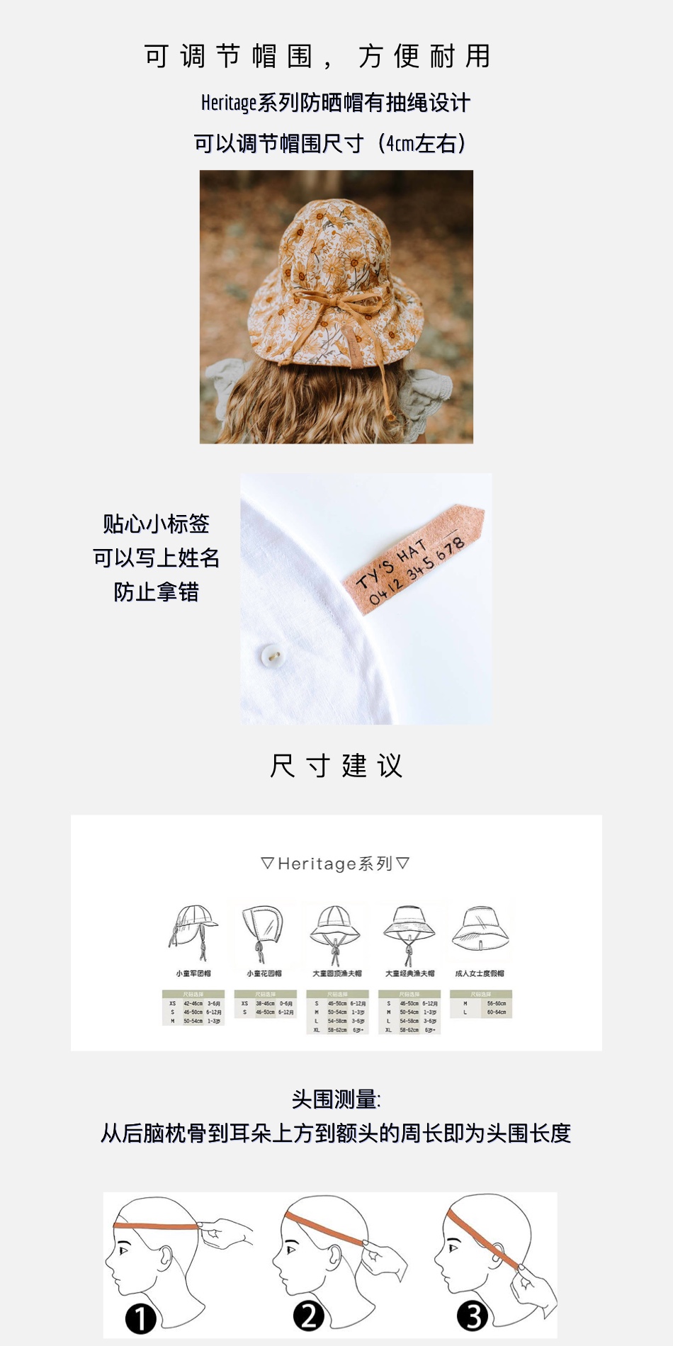 Heritage系列防晒帽有抽绳设计
