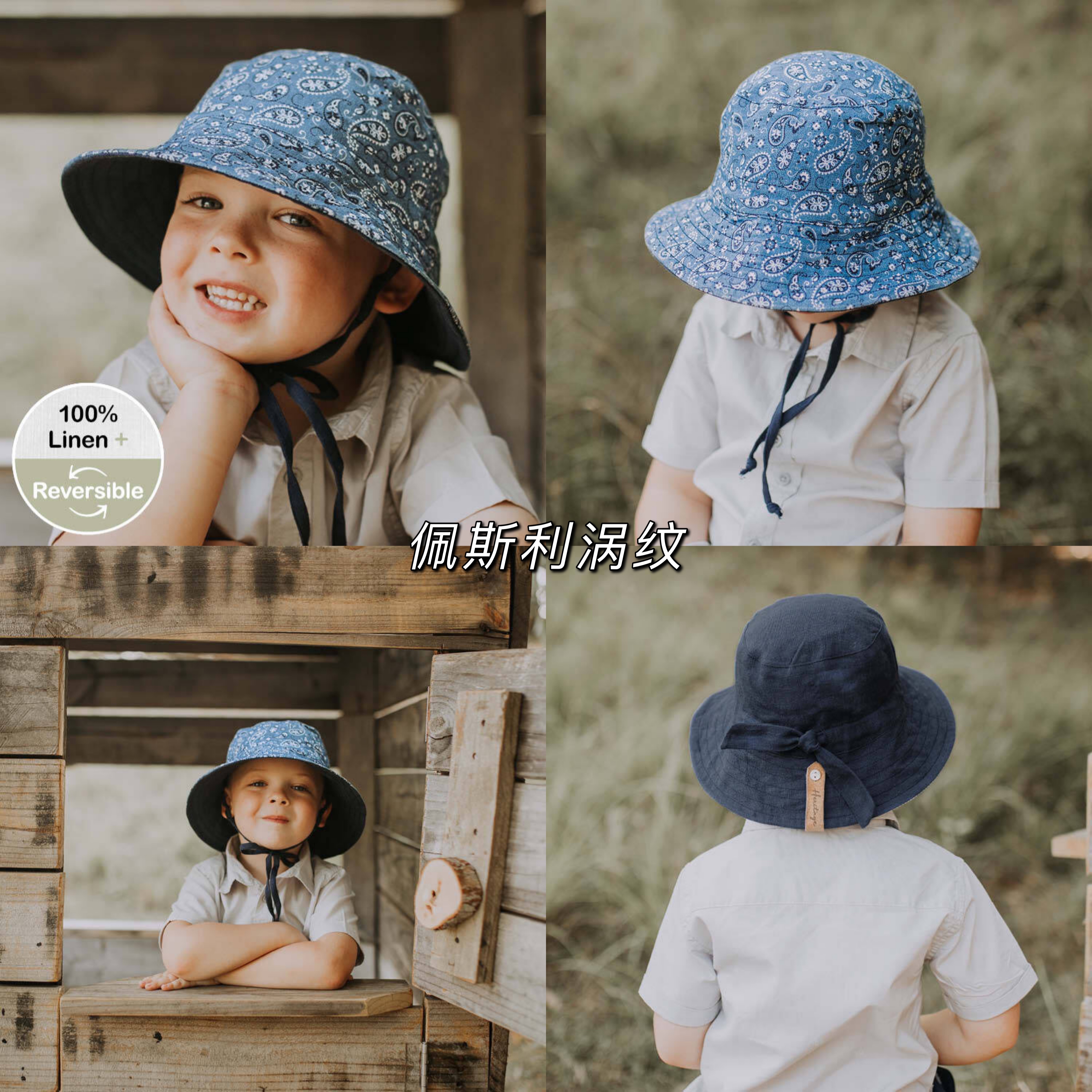 Bedhead儿童纯亚麻双面防晒帽UPF50+