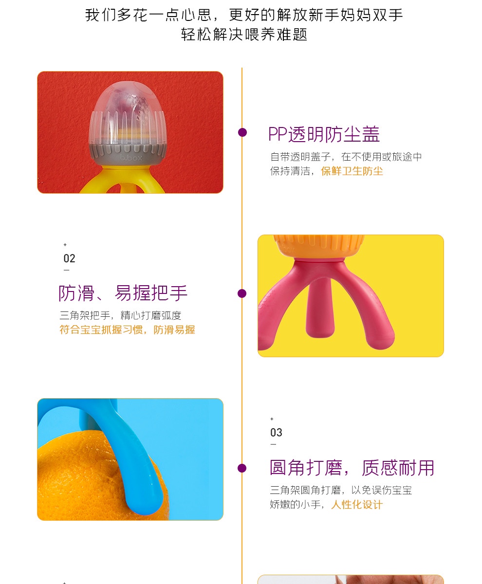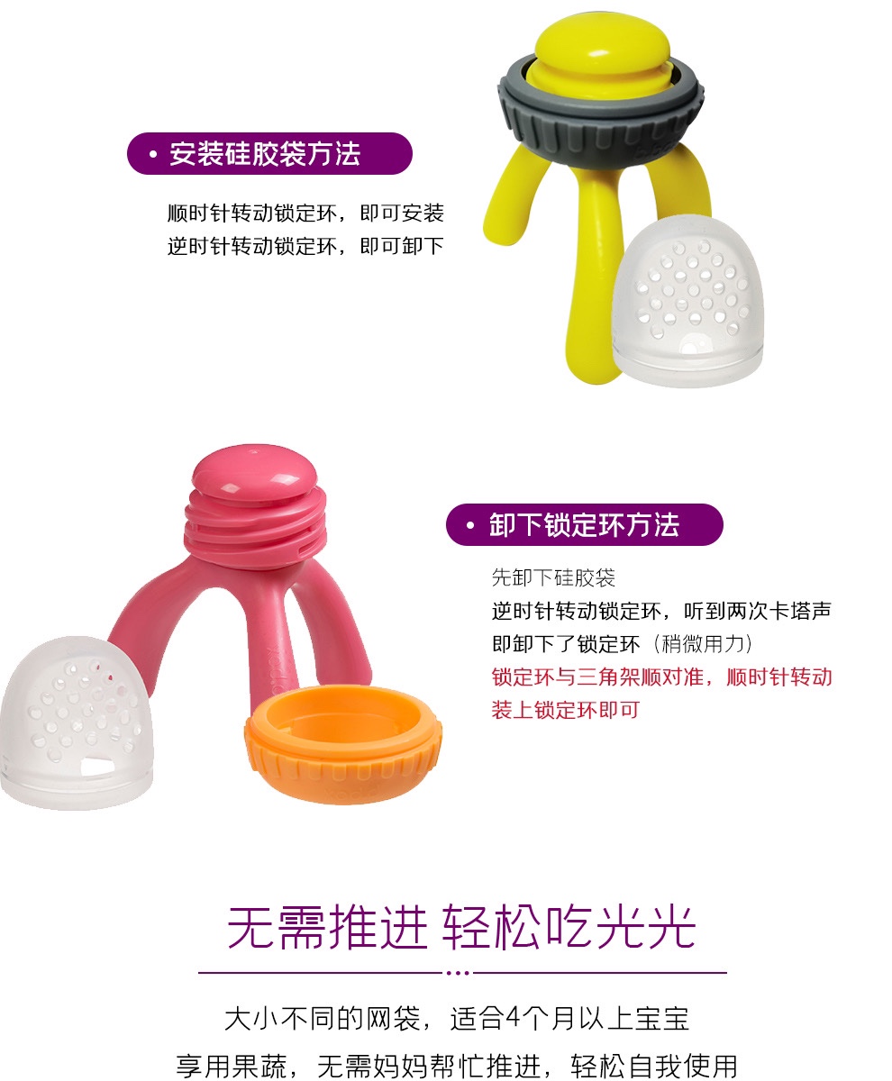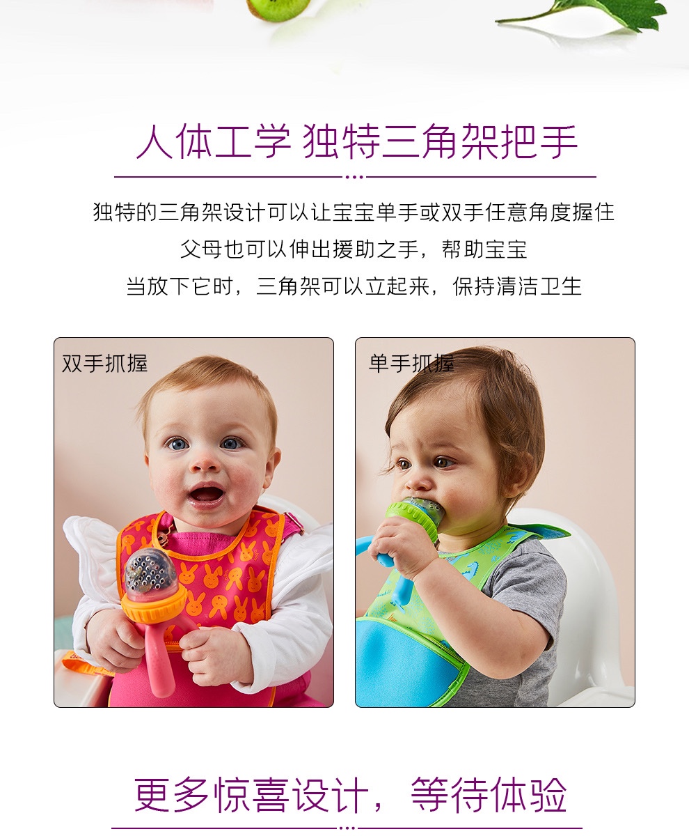 1、2mm大小网孔,出汁均匀,咬咬就能吃到新鲜果汁,保护宝宝不被大块果肉噎到