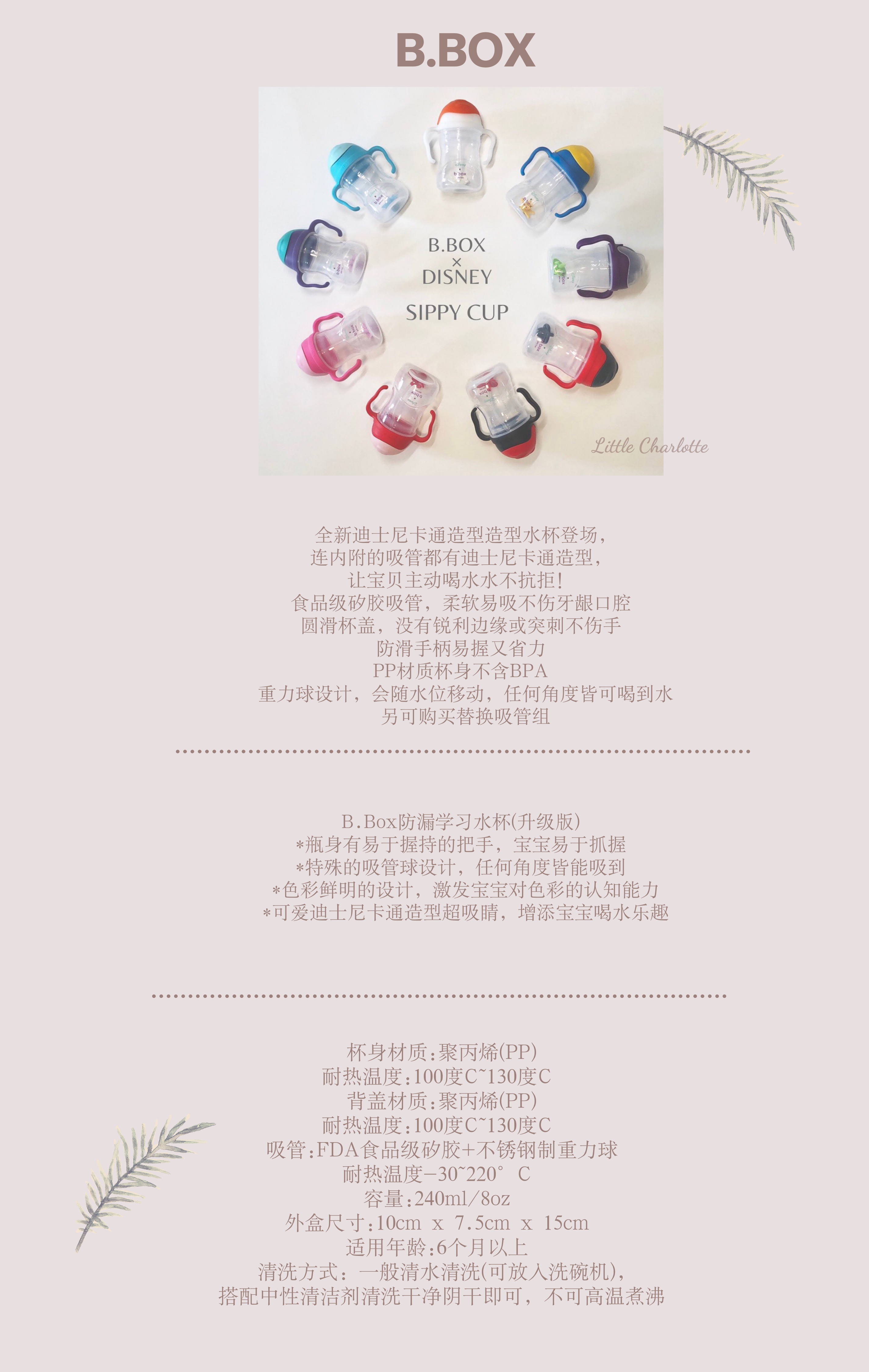 全新迪士尼卡通造型造型水杯登场,连内附的吸管都有迪士尼卡通造型,让宝贝主动喝水水不抗拒! 食品级矽胶吸管,柔软易吸不伤牙龈口腔圆滑杯盖,没有锐利边缘或突刺不伤手防滑手柄易握又省力。 PP材质杯身不含BPA重力球设计,会随水位移动,任何角度皆可喝到水另可购买替换吸管组。
