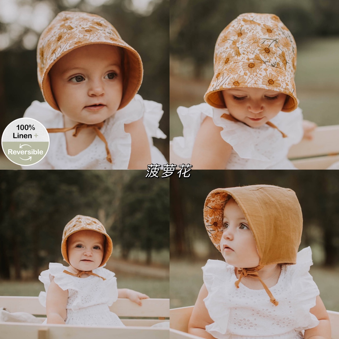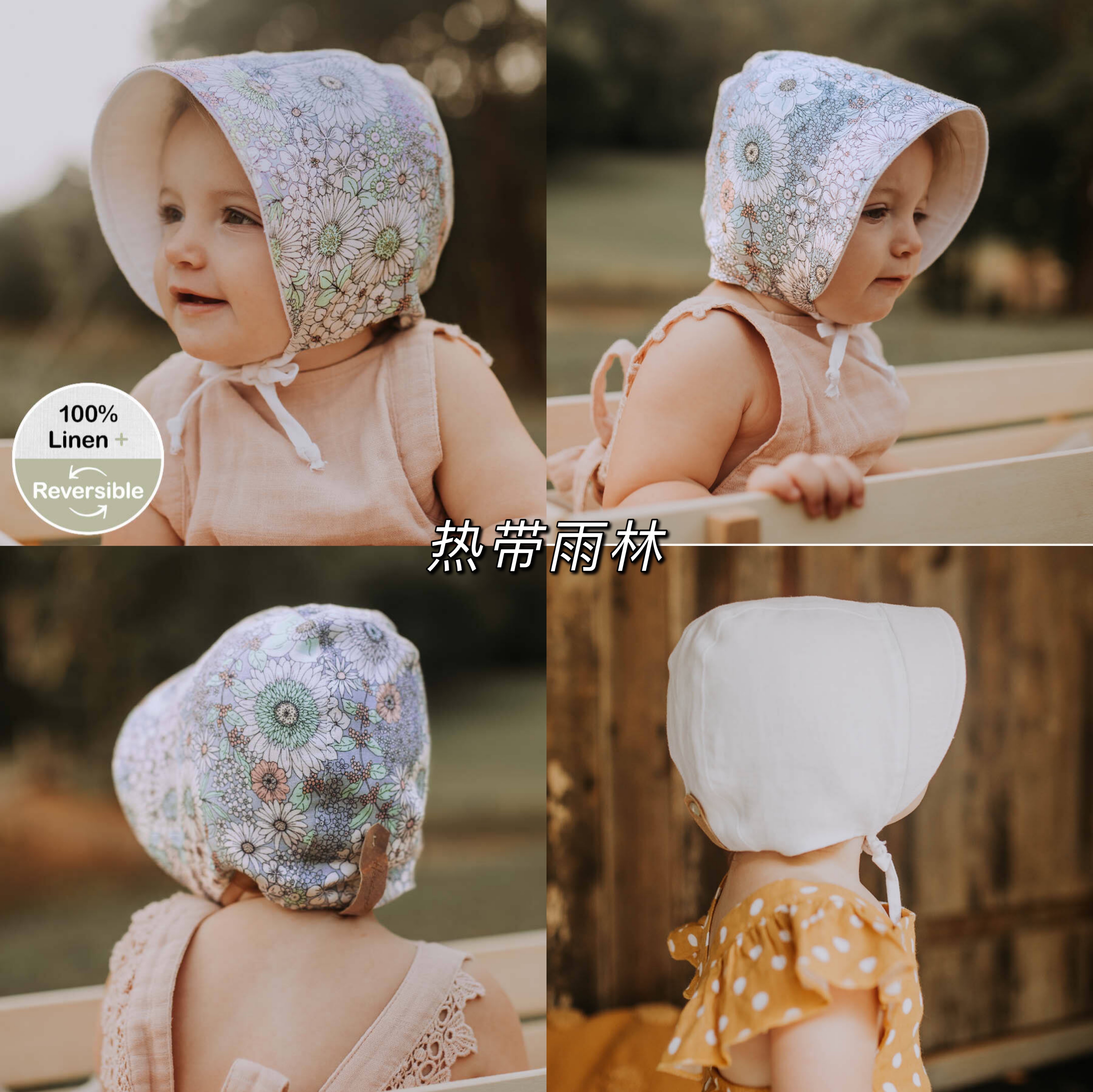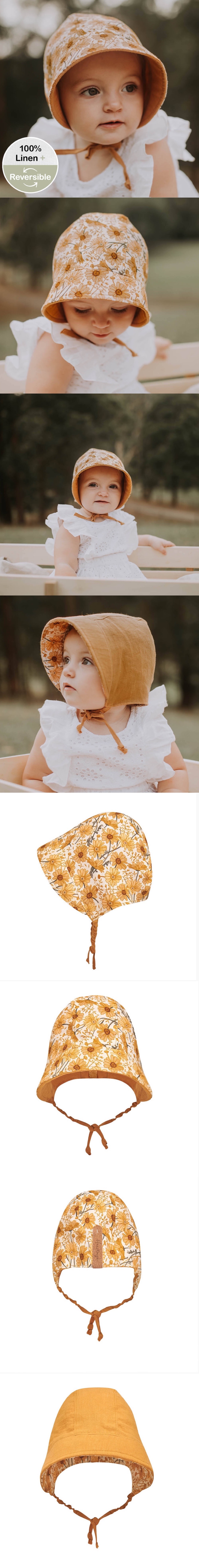 Bedhead女童纯亚麻双面遮阳帽UPF50+