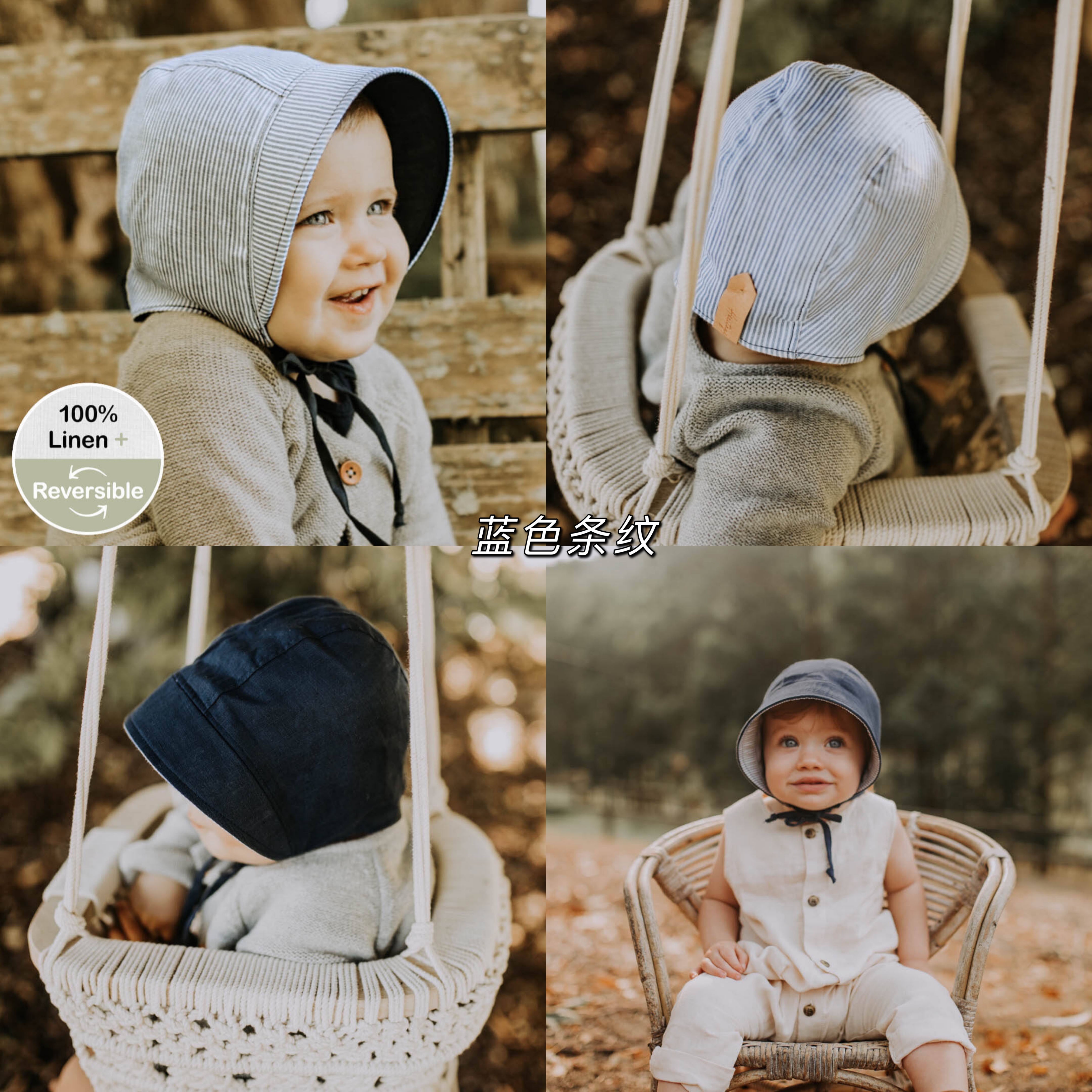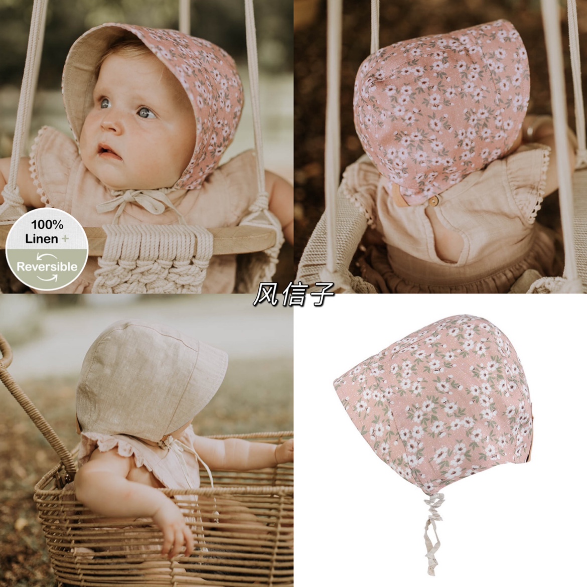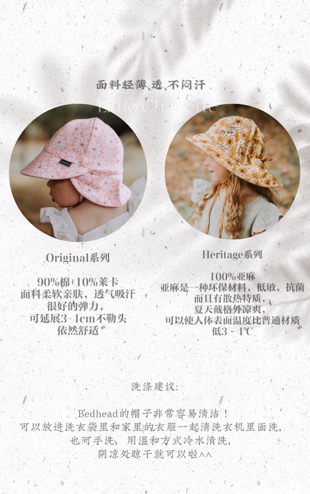 Bedhead女童纯亚麻双面遮阳帽UPF50+
